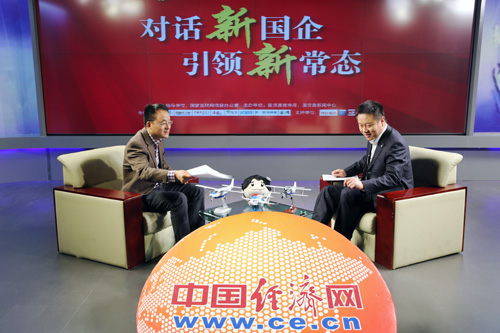中航通飛華北飛機公司董事長,黨委書記張樞瑋做客《中經在線訪談特別節(jié)目——對話新國企,引領新常態(tài)》。裴小閣/攝
