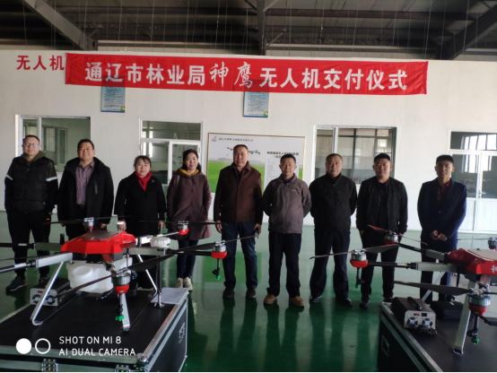 2019年3月11日,“神鷹”植保無(wú)人機(jī)交付儀式在通遼市神鷹飛機(jī)制造有限公司舉行,通遼市林業(yè)局森林病蟲(chóng)害防治檢疫站敖特根、李仁貴等領(lǐng)導(dǎo),以及通遼市神鷹通用航空有限公司總經(jīng)理司治莊、副總經(jīng)理齊洪峰、通遼市神鷹飛機(jī)制造有限公司副總經(jīng)理魏建東參加了交付儀式。