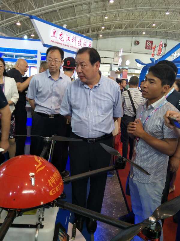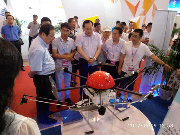 自治區(qū)副主席白向群蒞臨展會(huì),參觀公司參展的植保無人飛機(jī)。